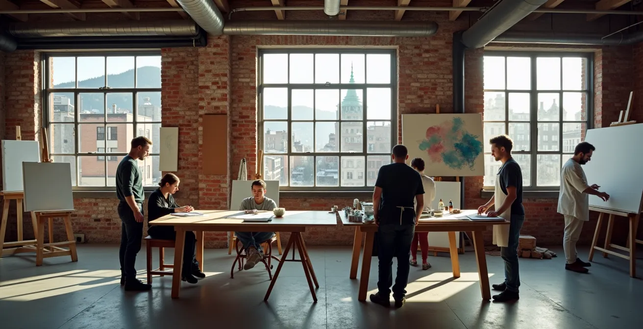 Cette cartographie révèle des pôles créatifs distincts. Des ateliers partagés du Mile End, parfaits pour les artistes visuels établis, aux makerspaces de Griffintown, hubs de technologie pour les créateurs numériques, chaque quartier offre un profil de talents différent. Le simple fait de choisir où prendre son café peut devenir un acte de réseautage stratégique si l’on opte pour les cafés créatifs du Plateau, lieux de rencontre informels pour les artistes émergents.
